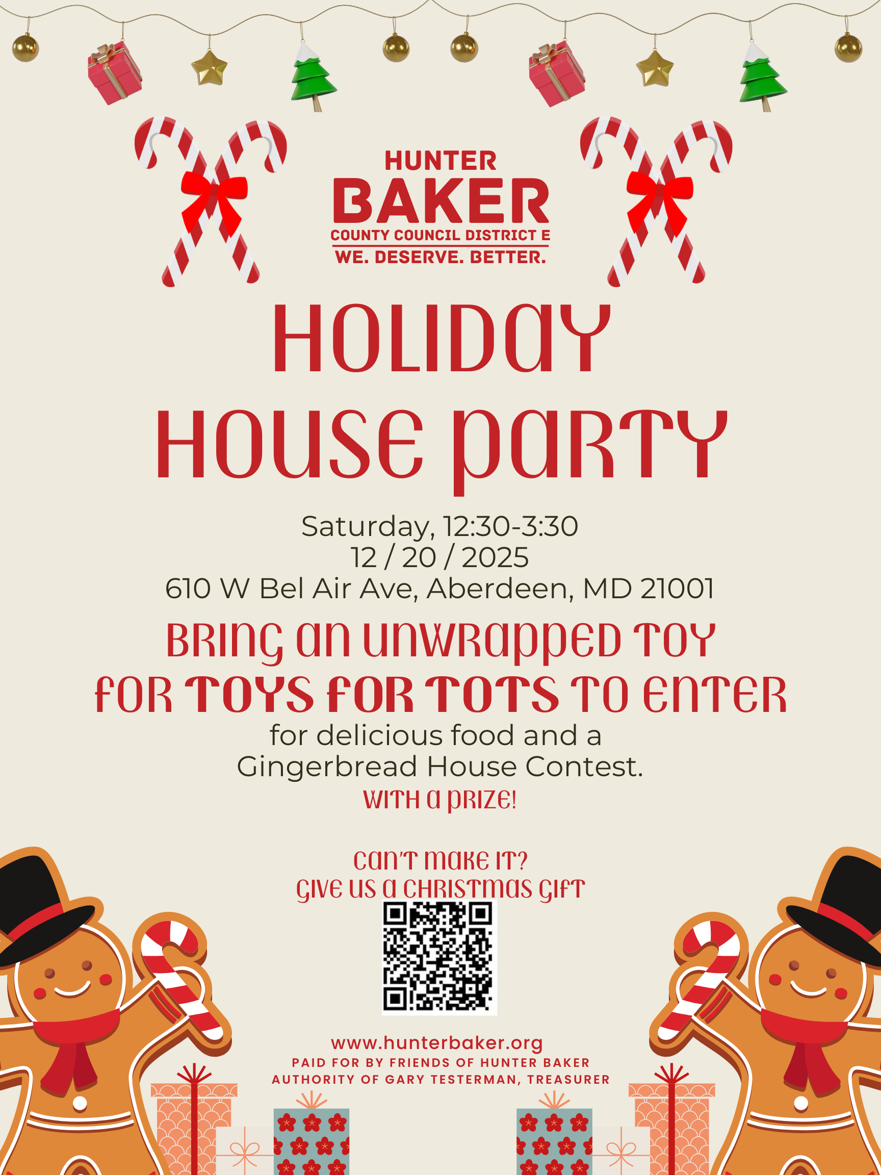 Our third event was a cozy holiday house party! There was some great food and important talks about policy in the County. We had a few bags of toys that were brought in for Toys for Tots. Thanks to my family and friends who made it out.