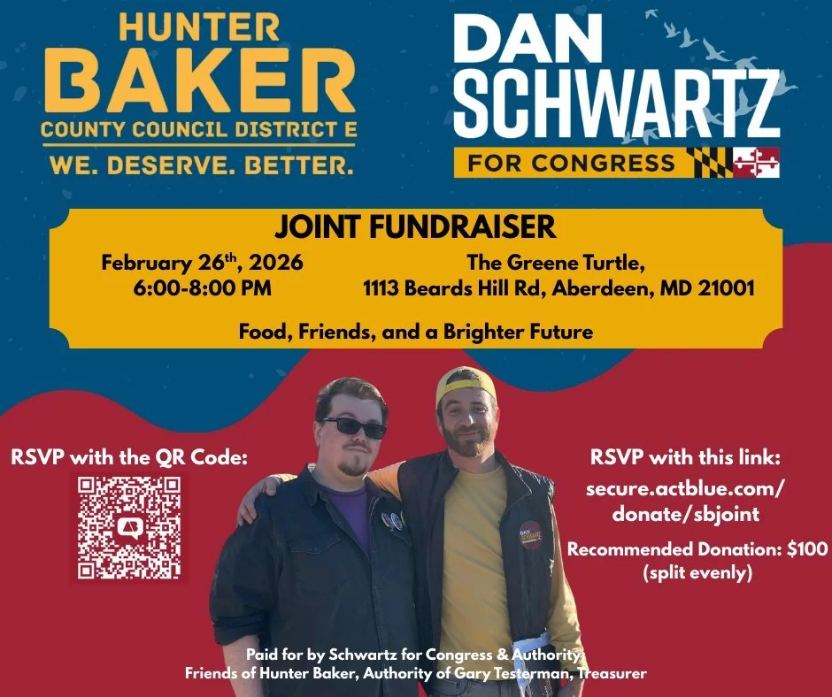 Any proceeds from this event are divided evenly between Dan Schwartz’s campaign and my own. We are happy to be working with a candidate who supports candidates down the ballot.