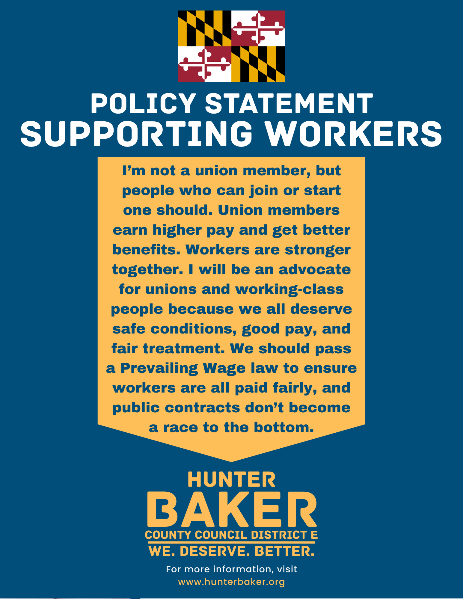 Support unions and protect the right of Harford County workers to organize for fair wages, benefits, and safe workplaces.